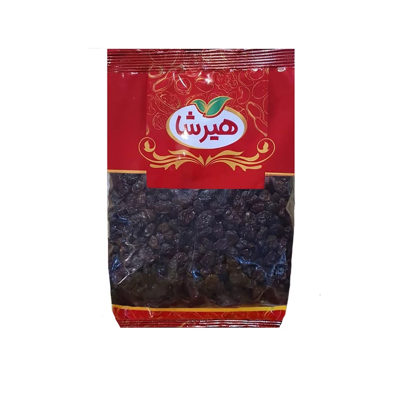 Hirsha pilaf raisins are prepared from the best type of dark pilaf raisins from Lorestan province. Brown or dark raisin, or piloui raisin, is made from the strongest and most special type of honey-colored seedless grape, which changes color during the stages of drying and becoming a raisin. This tonic product, rich in various useful properties, is used in many authentic Iranian dishes, especially in hot seasons, in cucumber buttermilk, which is very popular. One of the advantages of Hirsha rice pudding is that it is clean, uniform and cleaned. The advantages of Hirsha products include the freshness of products and hygienic packaging. Please wash it with cold water before use. The packaging material of Hirsha products consists of three-layer polyethylene, which includes 2 layers of cellophane and an outer layer of glossy paper. It is also reminded that Hirsha products do not contain any preservatives, so keep them in the refrigerator after opening the package.